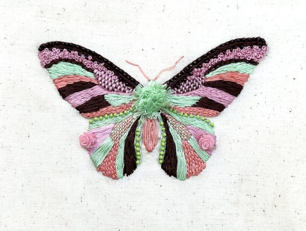with studio practice, creating custom embroidery art and handmade textile art that